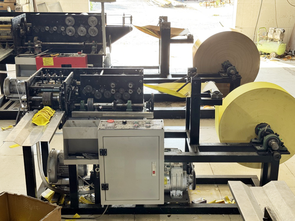 可生產(chǎn)大小規(guī)格的元寶機(jī),元寶長(zhǎng)度從10公分到30公分的各種規(guī)格的機(jī)器都有,元寶盤紙有膜無膜的都可以使用,生產(chǎn)速度快,穩(wěn)定性好,維修率低,產(chǎn)品質(zhì)量好。